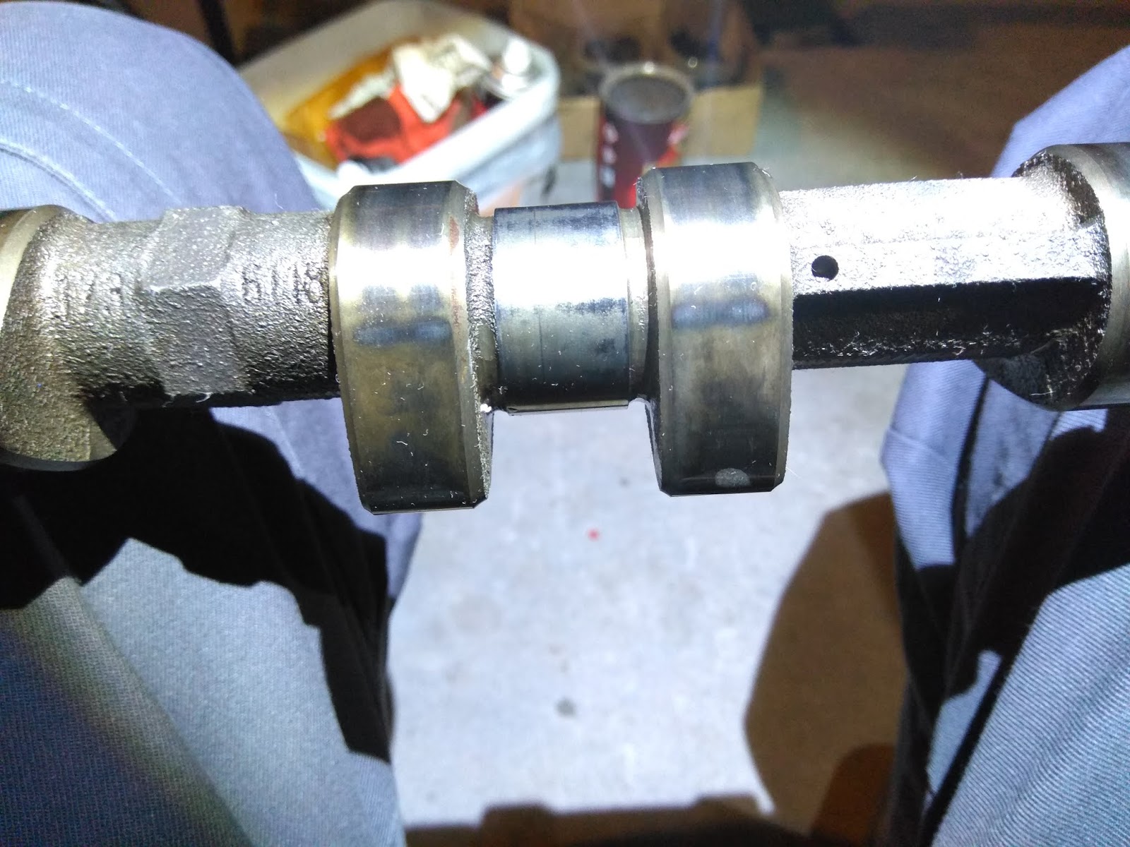 3. Blok. Konieczne było rozpięcie skrzyni biegów. Dorobiłem sobie stelaż do którego zamocowałem blok i mogłem nim dowolnie obracać i leciałem z każdym tłokiem po kolei. Gładzie cylindrów nie miały progów. Rzekłbym, że było czuć jeszcze fabryczne honowanie hehe Tłoki za to były zdrowo pokryte nagarem. Słaba odma, ja sądzę też przedmuchy... i szedł olej razem z mieszanką. Mam podejrzenie, że ktoś już mógł zaglądać do tego silnika, no bo jak wytłumaczyć pierścienie z zamkiem na 4-5 mm?? Zużyciem? Jednocześnie wszystkie części były oryginalne. Możliwe że przechodziła w USA akcję serwisową z uwagi na nikasil. Wału nie zdejmowałem. Uznaliśmy z bratem, że nie ma potrzeby. Luz też nie występował. Nowe pierścienie Mahle wskoczyły na każdy cylinder. Luz zamkowy w zależności od pierścienia był zawsze w górnej granicy jaką podaje TIS. Super. Panewki Glyco wskoczyły pod korbowody. Niestety śruby do korb w zamienniku nie występują, więc kupiłem w ASO. Tylko ta cena.... W bloku również wymieniłem wszystkie oringi i uszczelnienia gumowe. Kołnierzyk gumowy przy odmie w zasadzie nie istniał. Zostały z niego tylko resztki plastiku.